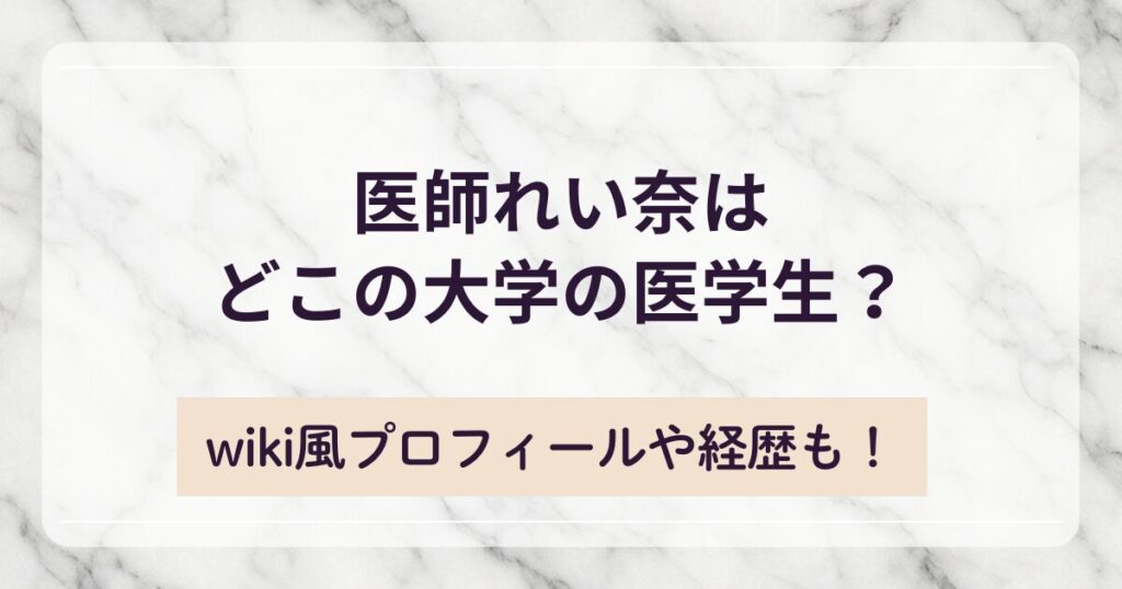 医師れい奈はどこの大学の医学生?wiki風プロフィールや経歴も!