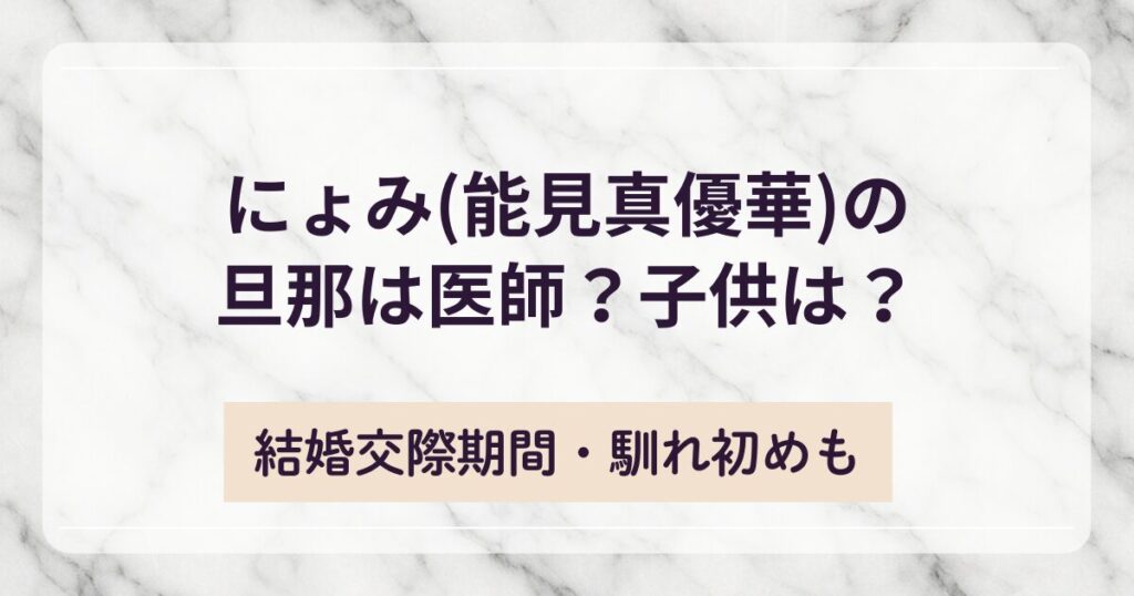 インフルエンサーとして活動しながら医師であるにょみ(能見真優華)さん。 この記事ではにょみ(能見真優華)さんの旦那が医師であるか調査しました! 気になる子供に関して、結婚や交際期間など馴れ初めについてもご紹介します。 にょみ(能見真優華)の旦那は... -