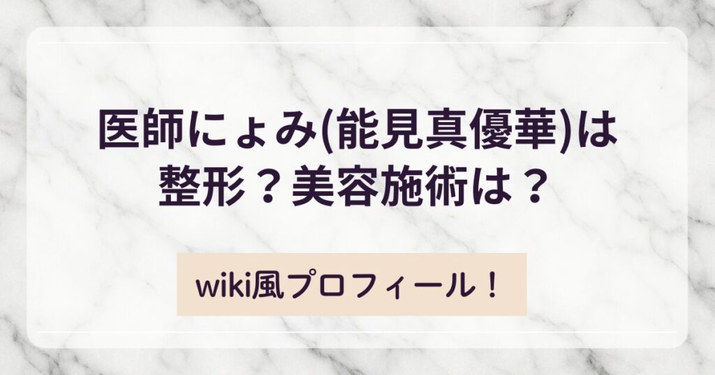 医師にょみ(能見真優華)は整形?美容施術は?wiki風プロフィール!