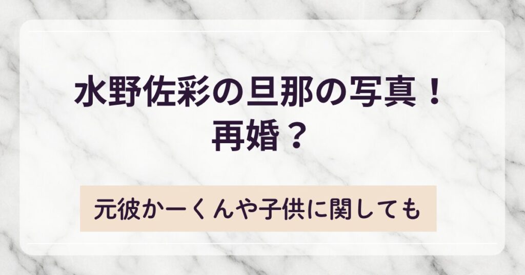 モデルやインフルエンサーとして活躍されている水野佐彩さん。 この記事では水野佐彩さんの旦那さんの写真を調査しました! 気になる再婚や元彼と噂されるかーくん、子供に関してもご紹介します。 水野佐彩の旦那の写真!子供は? 水野佐彩さんは旦那さん... -