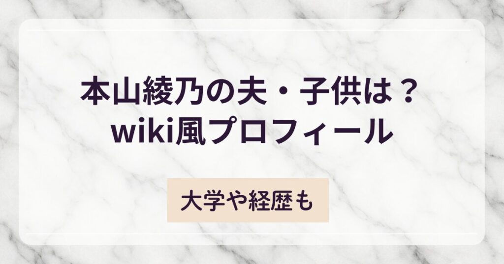 本山綾乃の夫・子供は?wiki風プロフィール・大学や経歴も